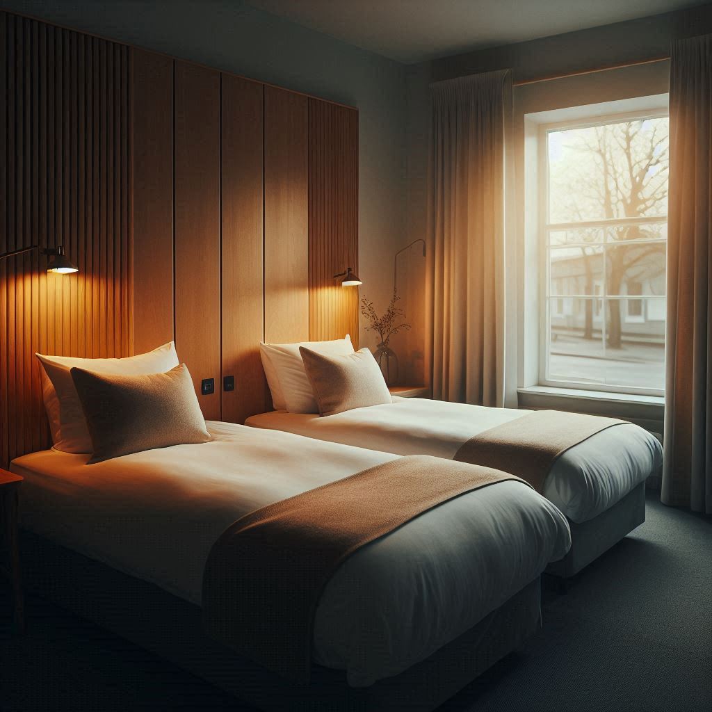 입구 문을 열자 조명이 부드럽게 퍼지며 어둑한 바깥 분위기와 자연스럽게 이어졌습니다. 무인 체크인 장치의 화면은 글자 크기와 버튼 배치가 단순해 오래 고민하지 않고도 절차를 마칠 수 있었습니다. 프런트 주변은 물건이 어지럽게 놓여 있지 않아 첫 시야가 편안했고, 복도 바닥은 건조하게 관리돼 이동 내내 발걸음이 흔들리지 않았습니다. 벽면 톤도 중성 계열이라 조명이 반사될 때 눈에 자극을 주지 않았습니다. 객실 번호판은 일정한 높이와 간격으로 정리돼 있어 길을 잃을 염려가 없었습니다. 객실 문을 열었을 때 실내 온도는 이미 적당하게 맞춰져 있었고, 가구와 비품 배치도 통로를 막지 않아 공간의 흐름이 한눈에 들어왔습니다.